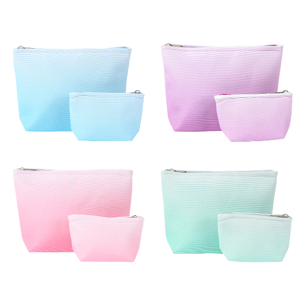 Descripción: Set fabricado en poliéster, conformado por bolsa principal sin asas y bolsillo con función de monedero, con diseño de color degradado y cierre metálico.