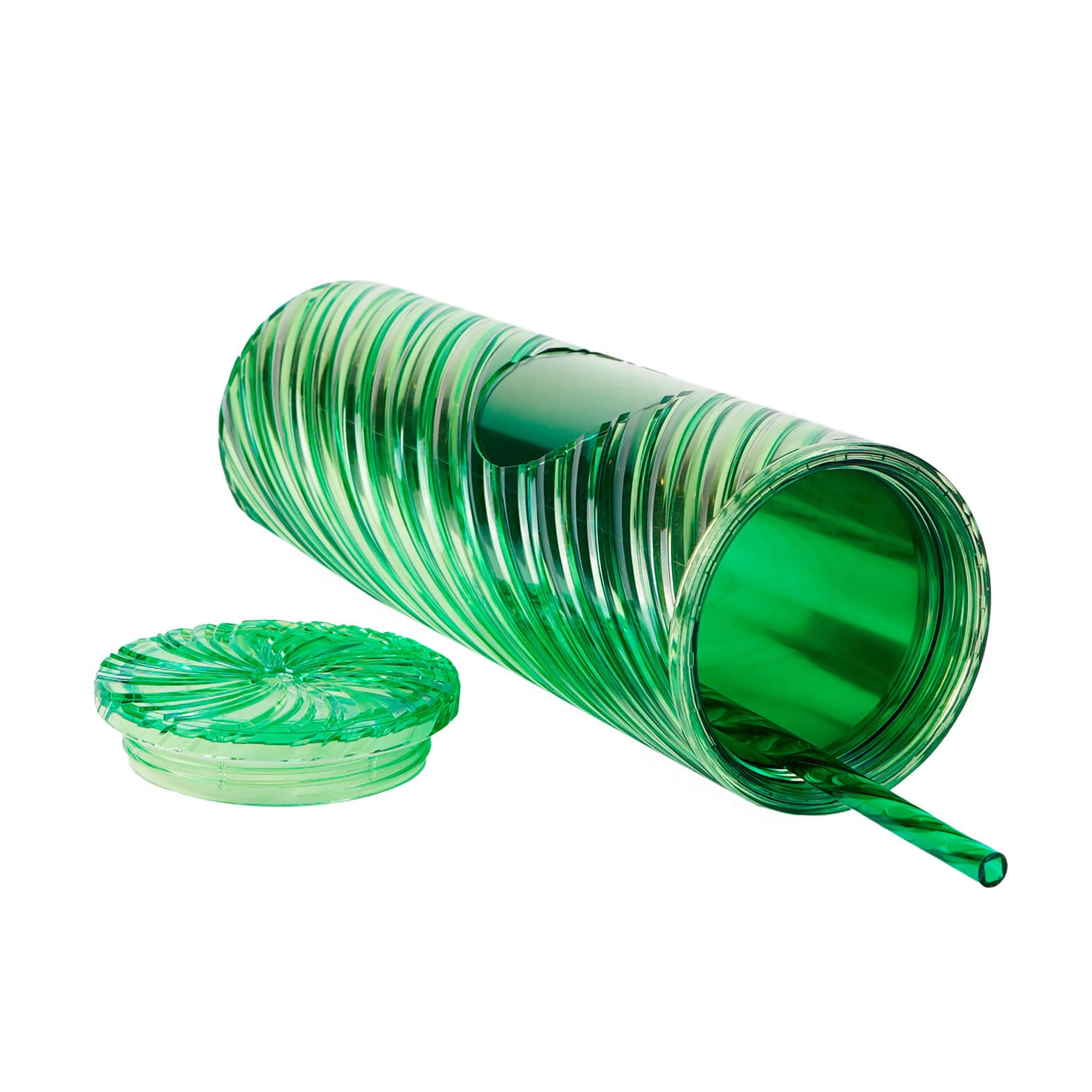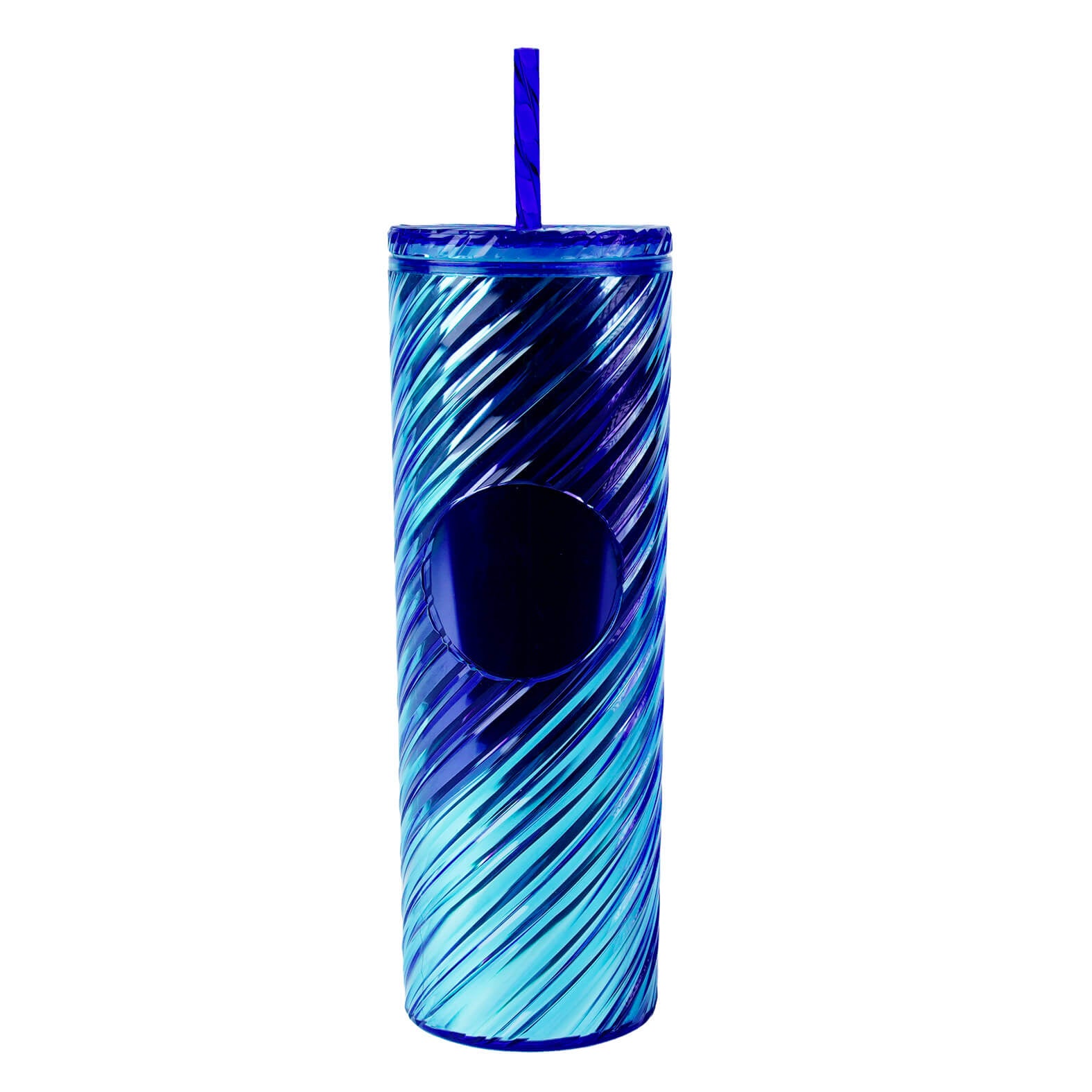 Descripción: Termo de plástico con doble pared, tapa enroscable y popote de plástico.