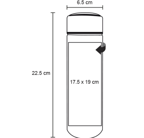 Medidas: Alto: 22.5 cm. Ancho: 6.5 cm. Capacidad: 500 ml.