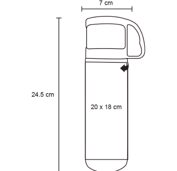 Medidas: Alto: 24.5 cm. Ancho: 7.0 cm. Capacidad: 500 ml.