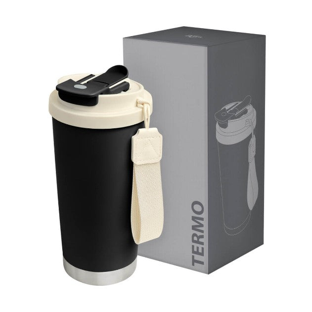 Descripción: Termo doble pared. Cerrado al vacío. Pared interna y externa acero inoxidable. Tapa de plástico con sistema de rosca y doble función que incluye, boquilla sencilla con sobretapa de cierre push y boquilla para popote con sistema plegable, para mantenerlo seguro y limpio. Su asa lateral permite llevarlo contigo facilmente y le proporciona un toque de modernidad. Mantiene la temperatura caliente por 6 hrs y la temperatura fría por 8 hrs. Capacidad de 17 Oz. Base de 7.3 cm de diámetro. Incluye popote de plástico y caja individual.